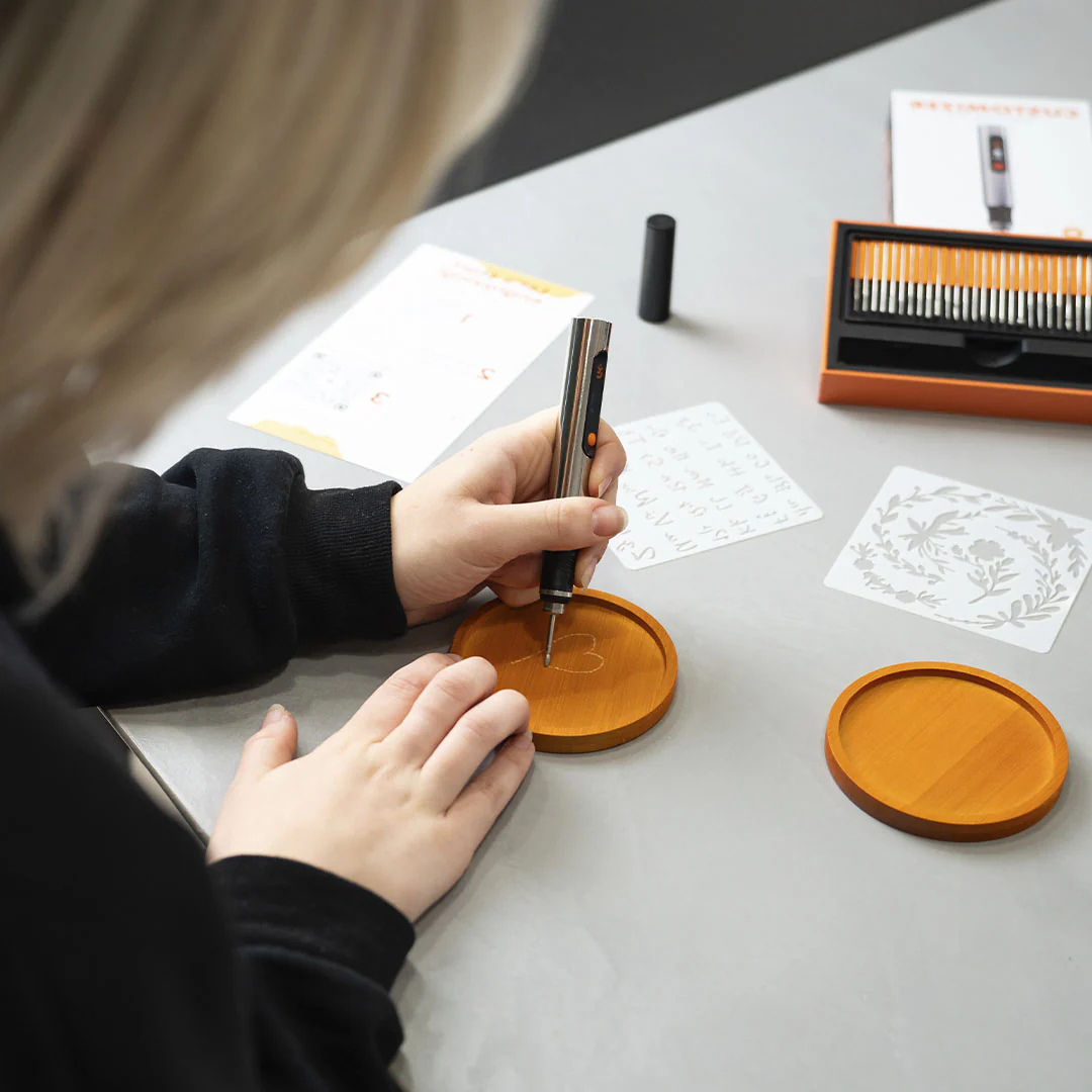 Absoluut! De Zengraver maakt het eenvoudig om je creaties naar een hoger niveau te tillen. Of je nu beginner bent of een ervaren maker, deze veelzijdige graveerpen is ontworpen om creativiteit eenvoudig en toegankelijk te maken. Je kunt moeiteloos materialen zoals metaal, hout, glas en plastic graveren, snijden en personaliseren. Met opzetstukken voor schuren, polijsten en afwerken helpt hij je om resultaten van professionele kwaliteit te behalen, zonder gedoe. De Zengraver is jouw go-to tool om nieuwe creatieve mogelijkheden te ontsluiten en je projecten met gemak naar het volgende niveau te tillen!
